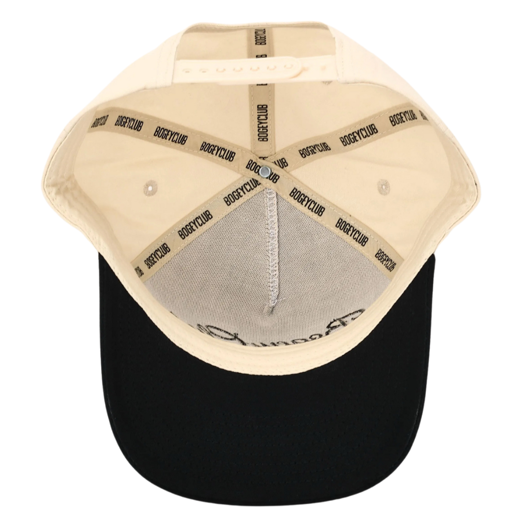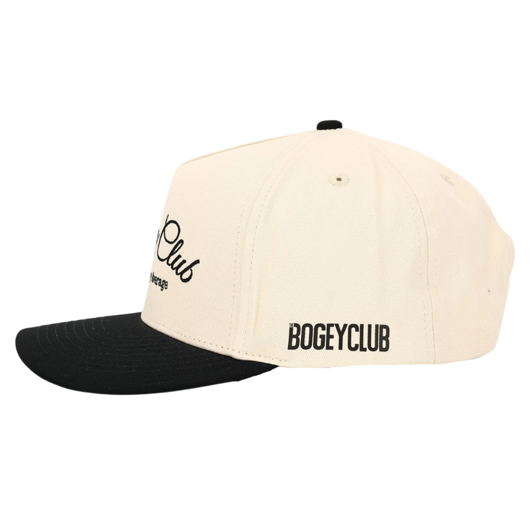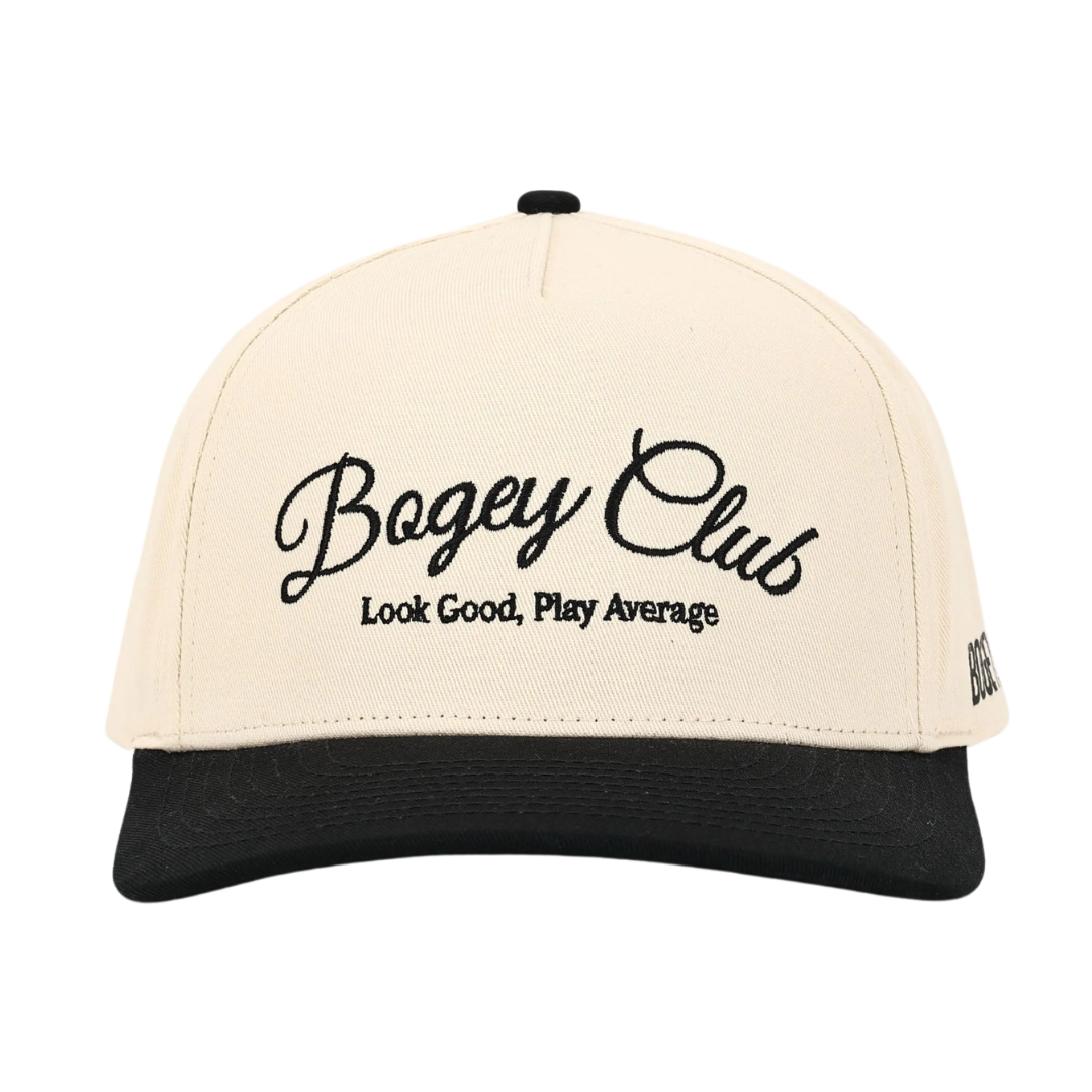 Timeless style meets everyday comfort. The Heritage Snap is a structured two-tone snapback featuring a clean off-white crown and deep green brim, embroidered with The Bogey Club’s signature motto: Look Good, Play Average. Crafted from a breathable cotton blend, this 5-panel classic is made to turn heads at the course, the clubhouse, or wherever your game takes you. Adjustable snap closure for a perfect fit every time.